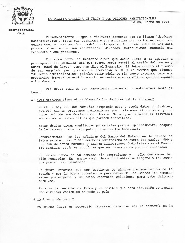 La Iglesia Católica de Talca y los deudores habitacionales.